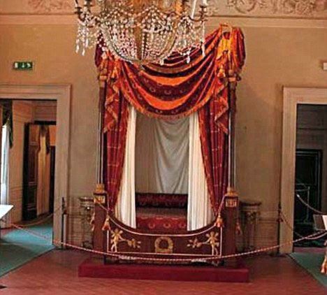 The playboy PM snapped up the "priceless" four-poster bed, complete with canopy and bronze eagle heads, from an antiques dealer pal. But he immediately demanded it be enlarged to accommodate a king-size mattress. Annamaria Quattrini, who sold him the bed, said: "Silvio is a very dear friend. I have known him for 25 years and met him when he came into my shop looking for a desk for his villa. "For its symbolic value, I would say the most important piece I have ever sold him was a bed that belonged to Napoleon, naturally in the style of an emperor. "It had a large canopy, bronze fittings and eagles on the four corners it's beautiful and I hope he has sweet dreams on it. "But it caused us our first argument because he wanted it widened." Ms Quattrini, whose shop is in the center of Rome, refused to say how much the perma-tanned billionaire media tycoon paid for the bed but said it was "priceless". She added: "When the bed was delivered as he requested he was delighted and he gave me a kiss and said it was beautiful. He is a real charmer but nothing happened between us." Berlusconi's family newspaper, il Giornale, reported the bed was for his new house at Lesmo near Milan. Berlusconi has often compared himself to Napoleon and Italian newspaper cartoons often illustrate him as the tiny French emperor. During a TV interview in 2006, Berlusconi said: "Only Napoleon did more than me, but at least I am taller than him." And last year his long-suffering wife Veronica Lario, 53, who is divorcing him, said he was "inspired by the spirit of the Emperor Napoleon". One Napoleonic historian in Rome, who asked not to be named, said she would be "horrified" if Berlusconi had altered the 200-year-old bed. She said: "It is a piece of history." Giulia Gorgone, of the Napoleon Museum in Rome, said: "Pieces of furniture owned or used by Napoleon are few and far between, but some do exist. "We often get to hear about them but we can never buy them as they are so expensive." Last year escort Patrizia D'Addario, 42, revealed she had been paid to spend the night with Berlusconi and described how she had slept in a "four poster bed with drapes" that Vladimir Putin had given him. Ms D'Addario described how several escorts girls had been invited to orgies held at Berlusconi's official residence in Rome, Palazzo Grazioli. We wonder if our readers are aware Italy gave birth to Berlusconi and Napoleon (he was born on the island of Corsica and his family originated from Italian nobility). Italy spawned them. IT CREATED THEM! "Minchia", it’s too late again. We can't abandon a lonely child who's more irresponsible than himself. "Only Napoleon did more than me, but at least I am taller than him." No, he isn't. It's a popular myth that Napoleon was short, in fact the little crackpot was 5'6 ft tall which was average height for the time. But Silvio is on record as fluctuating between 5'4 and 5'6 ft tall...depending on the lifts in his shoes and the relative humidity for the day. When two megalomaniacs ramble: Napoleon: "France has more need of me than I have need of France." Napoleon: "If you want a thing done well, do it yourself." Napoleon: "The French complain of everything, and always." Napoleon: "In politics... never retreat, never retract... never admit a mistake." Napoleon: "From sublime to ridiculousness there is only one step." Don't look now but there's a chuckle-faced nitwit who's one step away from doing something ridiculous with an 'escort' in your expensive bed.