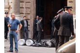 The 20 or so militants, caught on security cameras, planted a PdL flag, a child's potty, and a flag of a rightist youth group on top of the manure before running away from police. Police are inspecting video footage of the stunt, which echoed an incident in 2003 when 50 young anti-capitalists dumped about 130kg of manure outside Berlusconi's Rome residence. Apart from the unnecessary potty chair, is this supposedly shocking? After all, there isn't an Italian that would ever consider an Italian party office to be more prominent than a barnyard. - Down that street, there's a constant rancid and putrid smell that wafts in the air...especially during election time. - They are always prepared to 'poop plenty' about their politics. - And God forbid there's a mule in that building that would challenge the head farmer, Berlusconi,...that would call for a shot between the eyes. - Sometimes, they'll gather around some other manure pile and talk about how to solve Italy's latest fiscal problem. A cow will come along, stop, give that blank stare and say, "It’s my firm opinion that the Italian fiscal budget should be apprehended in its entirety, and the authenticity of the outcome is a reality." They'll all nod their heads in approval while chewing their cud...and with that same blank stare on their faces.